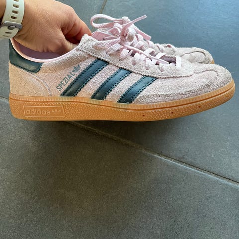 Adidas sneakers i str. 40. Modellen er en lav sneaker i brun farve med hvide striber og brun gummisål. Overdelen fremstår i et ruskindslignende materiale med snørelukning. Skoene har polstret hælkappe og klassisk Adidas-logo på hæl og pløs. Velegnet som hverdagssko.