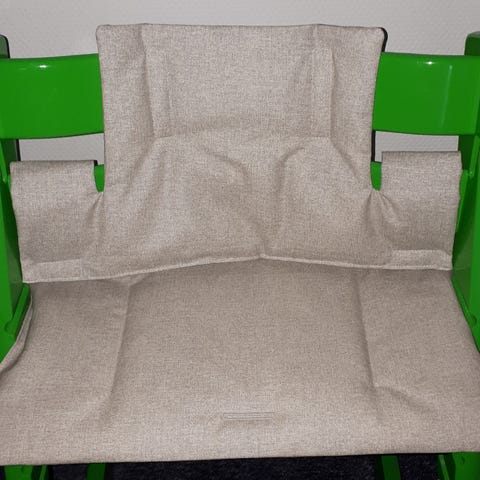Nyt hjemmesyet hynde sæt til tripp trapp højstol I lysgrå tekstilvoksdug lige til at tørre af