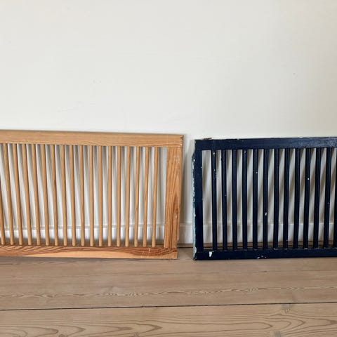 Sengen måler 108 x 70 når den er slået ind , men kan slås ud til en lille junior seng.