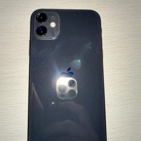 Apple iPhone 11 smartphone med 64 GB intern hukommelse i sort. Modellen har dobbelt kamera på bagsiden og fuldskærmsdisplay på forsiden. Batteritilstand på 98%. Velegnet til almindelig brug, streaming og apps med den angivne lagerkapacitet.