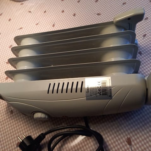 Mobil olieradiator fra Bright. 1.500 W. Fungerer upåklageligt.