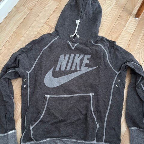 Nike hættetrøje til herre i størrelse L. Trøjen er grå og fremstillet i bomuld. Modellen har hætte og gennemgående lynlås foran og på armen . Velegnet som hverdags- eller træningsovertrøje i et enkelt, sportsligt design.