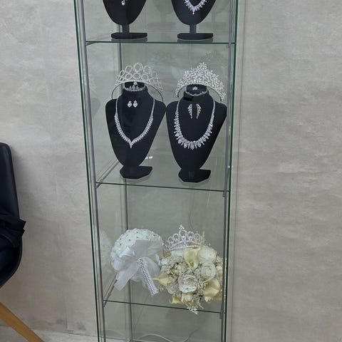 Vitrinereol på hjul forkromet og smukt forarbejdet samlinger hyldeafstande 46cm.