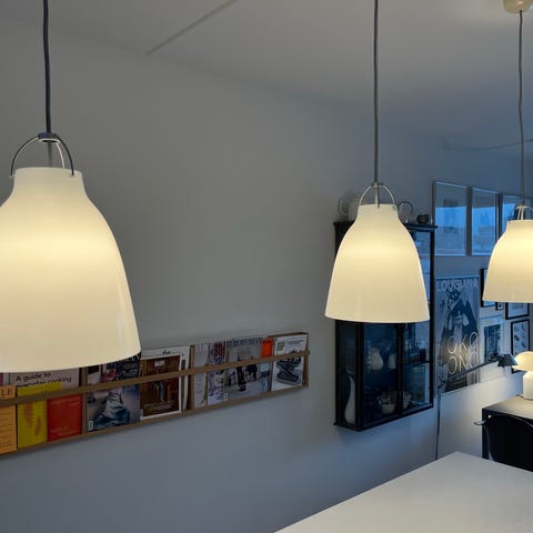 3 stk Caravaggio P2. Ingen skår. Giver perfekt lys. Ledninger og wire monteret på skinne. 6000 for alle tre