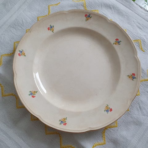 Et fajance fad med synlig patina. Vintage fra Aluminia stellet Anne Sofie som er designet af Niels Thorsson og produceret fra 1940 til 1966.