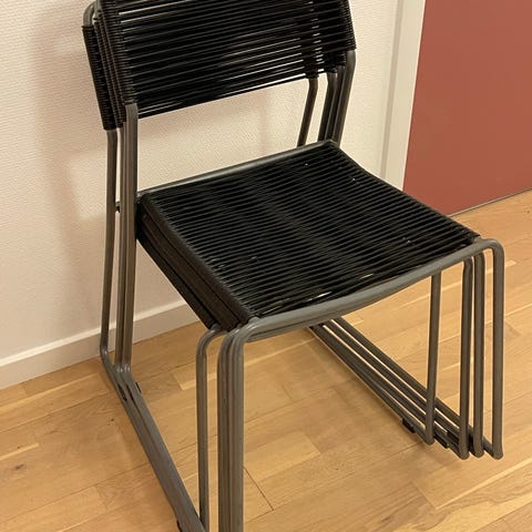 Retro og stemningsskabende IKEA LEIFARNE stole med gule plastiksæder og sorte metalben. Stolene har formstøbt sæde og ryg i plast og enkle, lige ben i metal. Egner sig til brug i spiseområde, køkken eller som ekstra siddepladser. Stablingsbare efter behov for nem opbevaring, som vist på billederne. Godt brugte, men charmerende.
