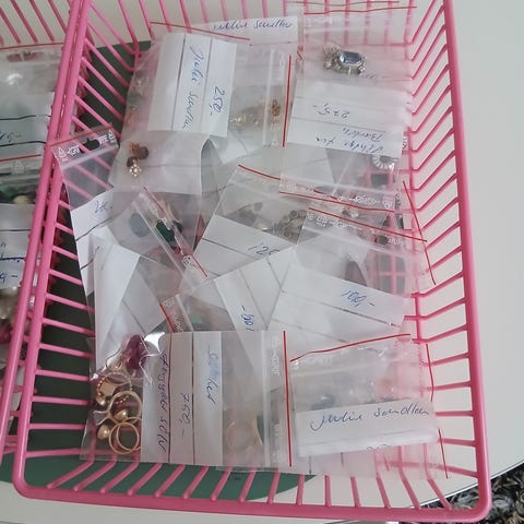 De fleste af smykkerne er nye/ubrugte, det er kun den gamle/antikke? norske sølvbroche, koralkæden og øreringene med lapis lazuli der har været brugt.