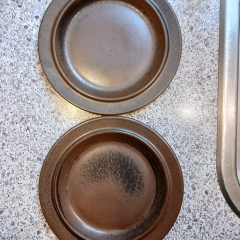 Arabia Ruska tallerken i rustikt brun stentøj. Designet af Ulla Precope. 25,5 cm. Har i alt 8 stk. Pris per stk