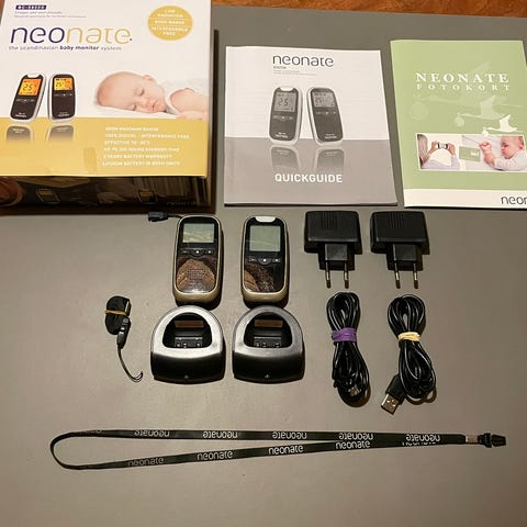 Sælger vores babyalarmer fra Neonate, BC-6500D, som er med talk-back-funktion, så man kan tale tilbage til baby😊 De er blevet brugt til 1 barn, blevet passet godt på og er i flot stand👍🏼