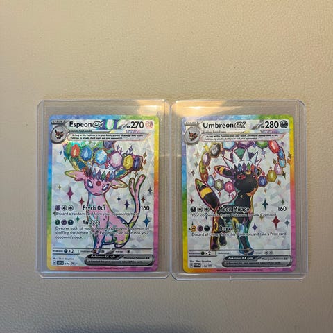 Pokémon, Prismatic Evolution, samlekort, Umbreon EX, Lugia EX, trænerkort m.fl.