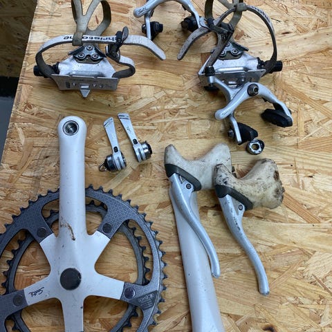 Shimano Claris R2000 gruppesæt. Sættet indeholder kranksæt med dobbelte klinger, forskifter, bagskifter, STI-skiftegreb til racerstyr samt for- og bagbremsekalibre (uden bremseklodser gummi)