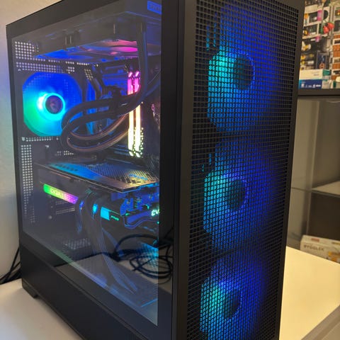 Kraftig stationær gaming pc sælges, da den ikke bliver brugt nok længere. Den kan spille alt i høj grafik uden problemer, og fungere som den skal. Den kører cs2 og Fortnite med omkring 350-450 fps. Kan afhentes i Vejle eller sendes på køberens regning.