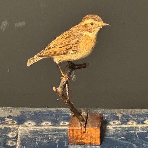 Udstoppet rovfugl på træfod