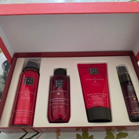 Rituals Sakura gavesæt til kropspleje og hjemmeduft i pink æske. Sættet indeholder fire produkter fra Sakura-serien: body cream, shower foam, duftpinde og duftlys. Serien er inspireret af kirsebærblomster og er egnet til daglig kropspleje og som duft til hjemmet.