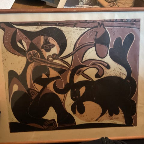 Grafisk tryk af Picasso. I flot stand, indrammet med passepartout i sølvramme.