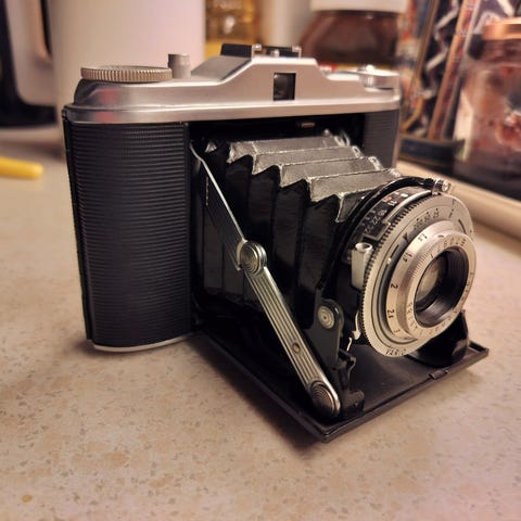 Vintage foldekamera (ca 1955) i rigtig god, testet og fejlfri stand.