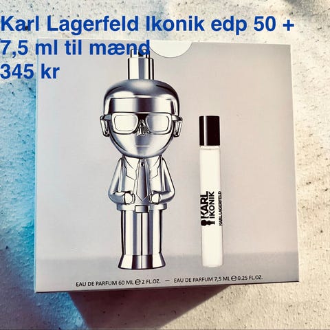 Karl Lagerfeld Ikonik eau de parfum sæt til kvinder. Sættet indeholder en eau de parfum på 50 ml i figurformet flakon samt en mindre spray på 7,5 ml, egnet som rejsestørrelse. Leveres i original æske med matchende design.
