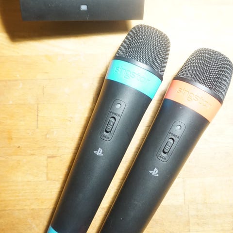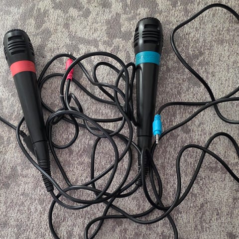 Sæt med 3 originale SingStar mikrofoner inkl. adapter sælges. Perfekt til karaoke, fest og spil. Virker som de skal og klar til brug.