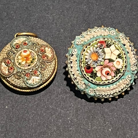 Hvert panel er håndlavet med små glasbitte (mikromosaik) i skønne livlige farver – typisk florentinsk håndværk med fine blomster og ovale motiver. Et rigtigt kunstværk, der skiller sig ud i enhver samling eller til daglig brug.
