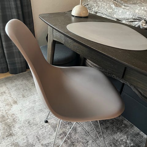 Vitra Eames Plastic DSR spisebordstol i sort med forkromet ben Eiffel tårn stel understed