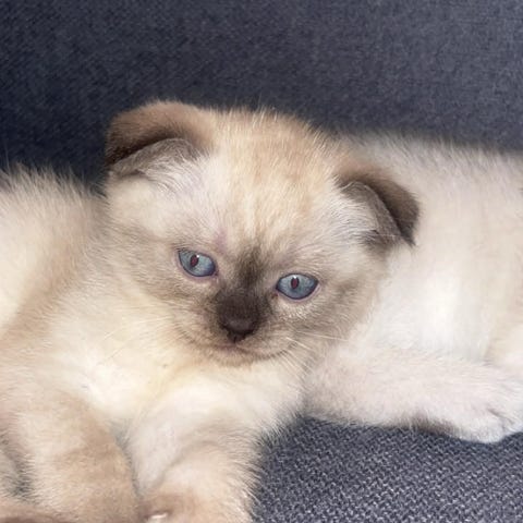 Han elsker tryghed, menneskekontakt og at ligge tæt. Han har de smukkeste blå øjne og kigger med kærlighed på en.