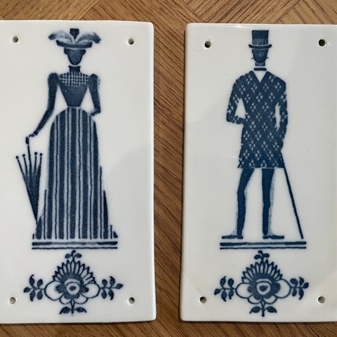 Royal Copenhagen dørskilt i hvidt porcelæn. Kvadratisk form med indhak i siderne til skruer. Undersiden er mærket med Royal Copenhagen stempel og modelnummer 983.
