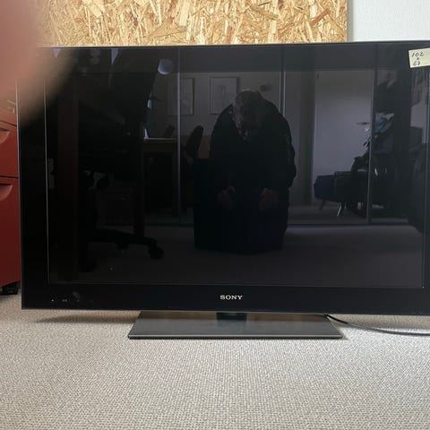 Sony tv i sort. Fladskærmsmodel med fritstående fod, egnet til placering på bord eller skænk