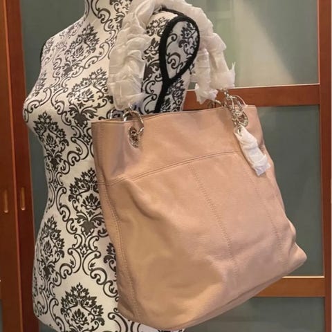 Ny og ubrugt Tommy Hilfiger crossbody taske i lysbrun læder og pels, med gylden lynlås og læderrem. Stadig med prismærke og plast på lukningen.