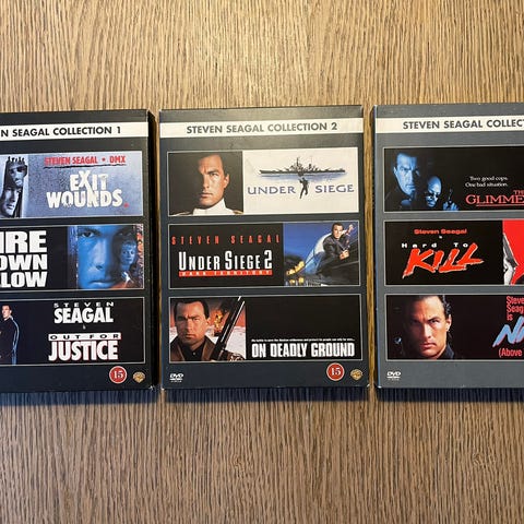 Brugte DVD'er med Steven Segal. Der er Brugsspor på alle pånær en af dubletter Out for a Kill