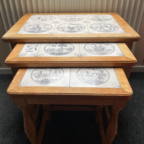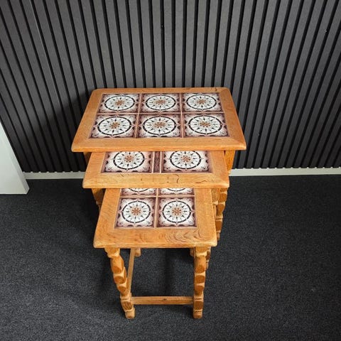 3 fine indskudsborde i massiv eg med fine detaljer på benene.