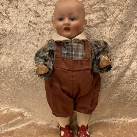 2 schattige all bisque Heubach figuurtjes L 10x H 13 cm met origineel l. blau...