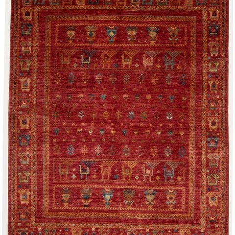 Koye-tæppet, håndvævet uld på bomuld, stammer fra Pakistan og måler 312 × 257 cm, i særdeles god stand og professionelt rengjort. Klik på den blå "gå til varen" knap, for at købe eller byde på denne vare. Den samlede pris vil blive vist inden du afgiver dit bud.