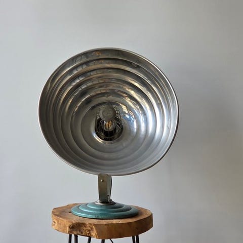 Efka metal bordlampe i grøn, mid-century modern stil, i god stand med små alders tegn, 50 cm høj, 34 cm bred, 7 cm dyb, estimeret periode 1950–1960, én fatning. Klik på den blå "gå til varen" knap, for at købe eller byde på denne vare. Den samlede pris vil blive vist inden du afgiver dit bud.