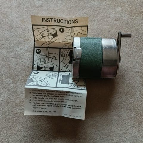 En klassisk National elektrisk blyantspidser, model KP-51, lavet i Japan under Shōwa-æraen (1970'erne).