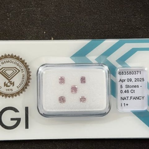Et sæt på 90 farvebehandlede runde diamanter med samlet vægt 4,01 ct, klarhed VVS1, farve Mixed Colors, certificeret af Antwerp Laboratory for Gemstone Testing (ALGT) under rapport nr. 5997547 og forseglet af laboratoriet. Klik på den blå "gå til varen" knap, for at købe eller byde på denne vare. Den samlede pris vil blive vist inden du afgiver dit bud.