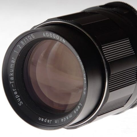 En klassisk 200 mm f/4 telefoto-objektiv fra Takumar/6x7-serien, lavet til Pentax 6x7 / 67 mellemformat SLR-systemet (en populær mellemformatplatform med '35mm-stil' håndtering).