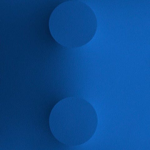 SUPERFICIE BLU er et blå akrylmaleri på udstrakt lærred, påsat en træplade fra 1999, ca. 40x40x3 cm, i fremragende stand uden ramme, signeret på bagsiden – samling