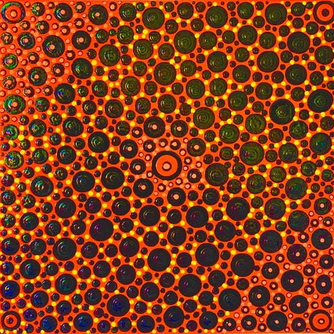 * PADELAH blev født i Teramo - Italien i 1961. Han vokser op i et blomstrende miljø, en familie af kunstnere og gallerister. Hans liv afspejles i udtrykket af farverige kompositioner, inspireret af naturens former og transformeret af kunstneren til gentagne motiver og mønstre. En
