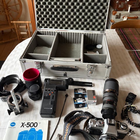 Minolta XD7 35 mm kamera i næsten nyt stand, ikke testet, med standardlinsen 50 mm f/2, manual og brugervejledning samt sæt mellemringar, øjeglas og gummisølvskærm. Klik på den blå "gå til varen" knap, for at købe eller byde på denne vare. Den samlede pris vil blive vist inden du afgiver dit bud.