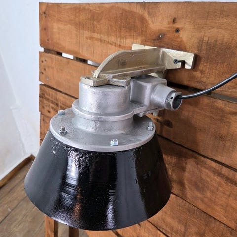 Polsk skibslampe fra 1960'erne, renoveret, klar til brug, aluminiumkrop, sort stålskærm.