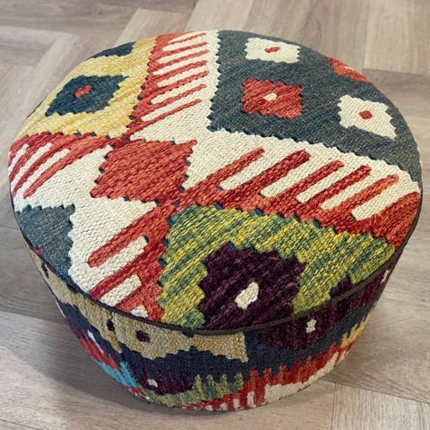 Kelim poef - håndvævet kelim - (ubrugt) - ny - uld - farverig kelim - ny - ub...