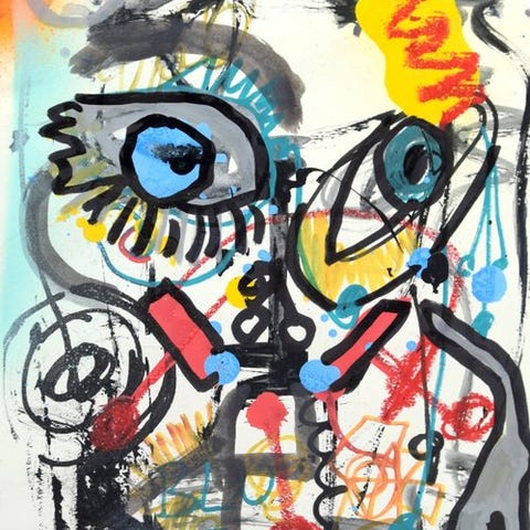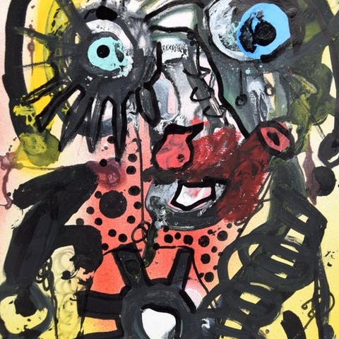 MARK KOSTABI, "Architects of strategy", 2010-2024, blandet teknik på karton, cm 35x40, med ramme 59x64x5 cm, 4,20 kg. Foran: underskrift og årstal nederst til venstre. På bagsiden: underskrift, titel, årstal, sted for udførelse. Ægthed angivet på kunstnerens foto. Oprindelsescertifikat fra Daliano Ribani Arte. Værket leveres med ramme som gave.