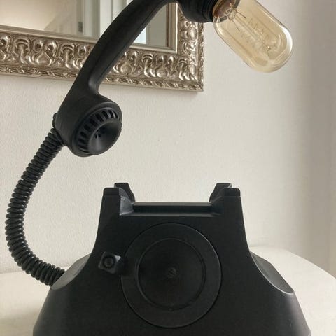 Smukt telefon fra 60’erne omdannet til en militærgrøn lampe, LED-lampe med spiral, der gør det muligt at orientere lyset i ethvert punkt. Alt nyt, perfekt, rent og steriliseret som nyt, kabling i overensstemmelse med CE-reglerne