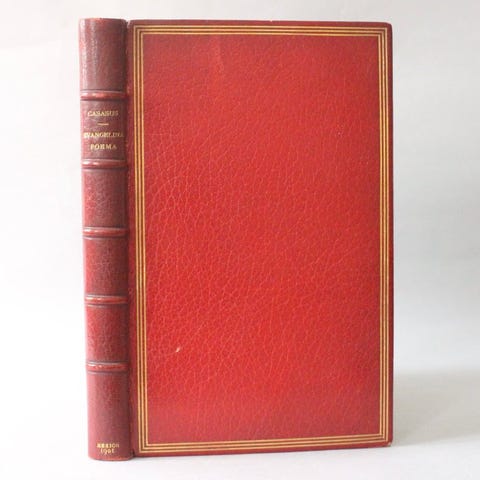 Samtidig indbinding i halvskind med gyldent titeltryk på ryggen,