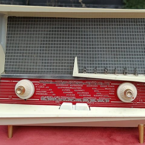 Et lille mesterværk af 1950'ernes design: Radio West Baby fra 1955 fortryller med sine bløde og dissonante linjer, et perfekt eksempel på retro-stil anvendt på elektronik.