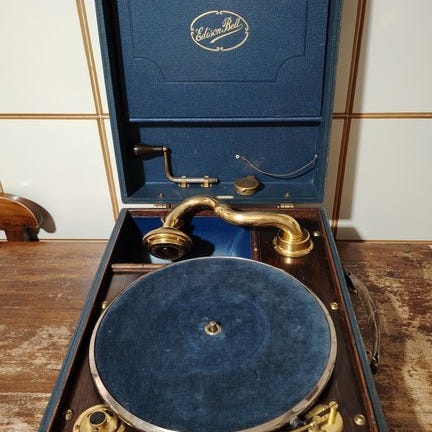 Denne model « Gem » tegnet af Edison er en lille phonograf med inkluderet udvendigt horn og fjederdrevet motor, og den blev markedsført af Edison-firmaet allerede i 1899 for at bekæmpe konkurrenternes billige produktioner; dens udbredelse var verdensomspændende.