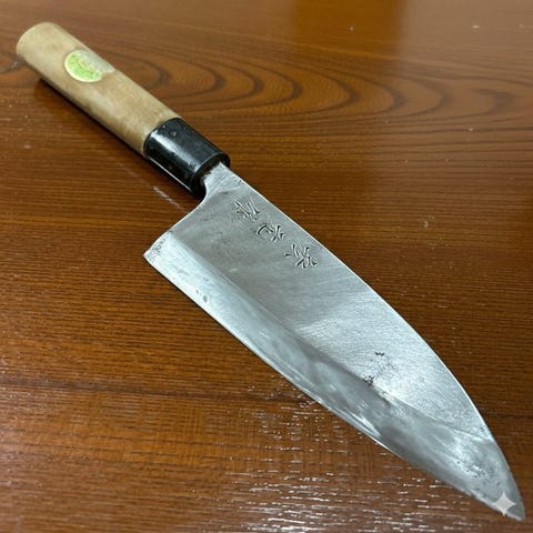 Kniven er lavet af højkarbon rustfrit stål. Dets blad (Jinbu 刃身) måler 19 centimeter og har en slibevinkel på 17-20° (Kireha 切刃) på kun den ene side, hvilket gør det ideelt til langvarige og meget præcise skæreopgaver.