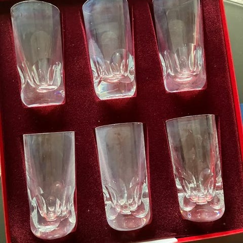 Sjælden mundblæst gennemsigtig krystalflaske, mærket under basen med syregravering: Baccarat, fladskåret kop. Håndværksmæssig forarbejdning er tydelig i hver detalje af dens regale og elegante form. Rund prop og fladskåret øverste del. Mål: højde 29 cm × diameter 12 cm.