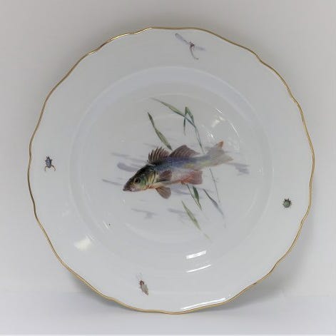 Spisestel til 6 personer, helt nyt og ubrugt fra udstillingsvitrine, mærket med Meissen, håndmalet med blomster, kornblomsterblå, insekter og smuk, fin og fantastisk guldbemaling, guldrandet! Perfekt stand, ingen afskrabninger!
