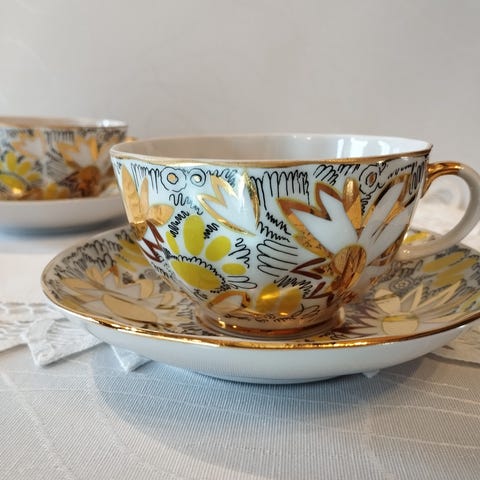 Smukke sjældne kaffestel, lavet af fint benporcelæn, med 22 karat guld.